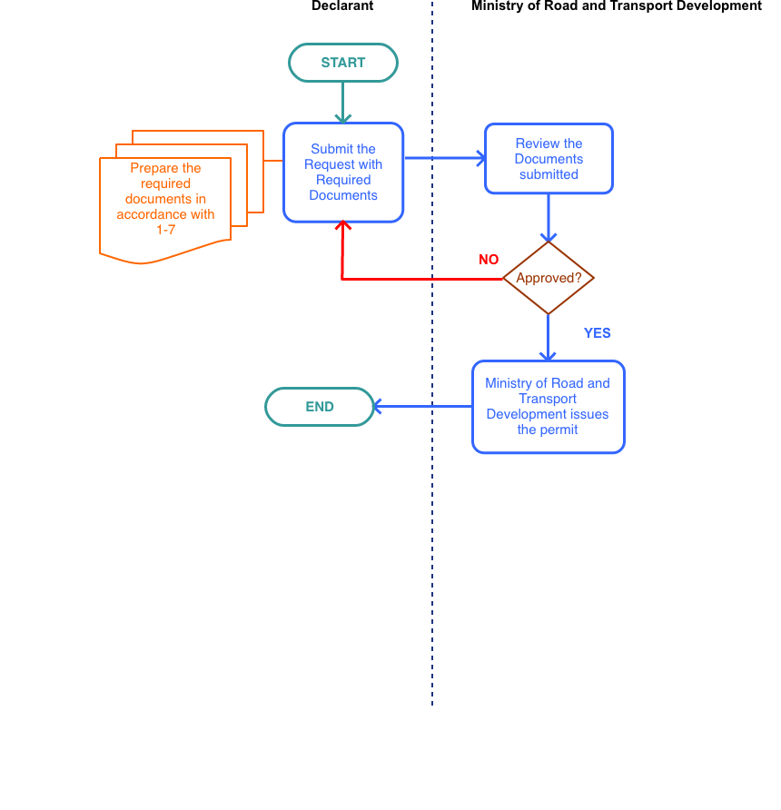 The Applicant submits a request to the Ministry of Road and Transport Development along with all required documents