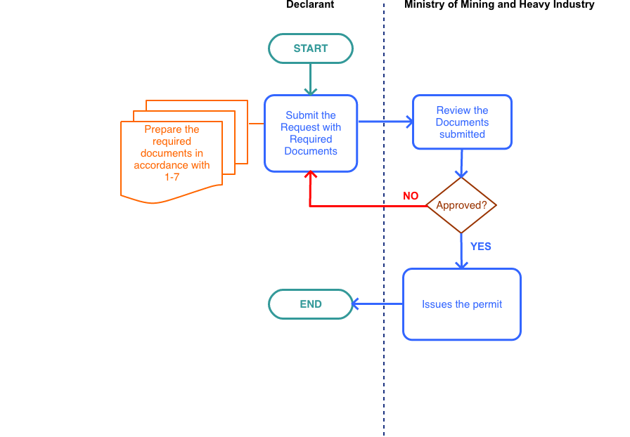 The Applicant submits a request to the Ministry of Mining and Heavy Industry along with all required documents