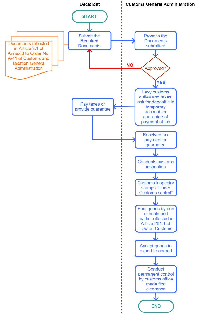 NOTE: 1. In case of non-return of goods within the specified time, a customs guarantee shall be issued and attached to the customs declaration on transfer of customs duties and other taxes deposited in the temporary account to the budget revenue account. 2. In case of failure to return the goods cleared in accordance with this procedure within the specified time, the customs clearance shall be carried out under the procedure of permanent export. 3. Goods under the customs clearance procedure for temporary export shall be inspected by the customs officer that initially cleared the goods, a special register shall be maintained, and upon expiration of the period, the customs clearance shall be carried out and the closing information shall be submitted to the relevant department of the State Customs Administration. If the state administrative body in charge of customs matters is required to submit information for the purpose of urgent clarification, it shall be complied with in a timely manner.